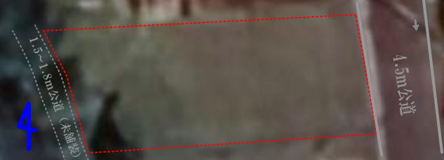 | 接道状況 | 東側幅員4.5mの公道、西側幅員1.5~1.8mの公道に面す |