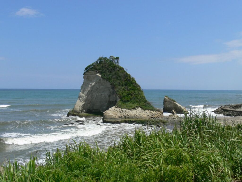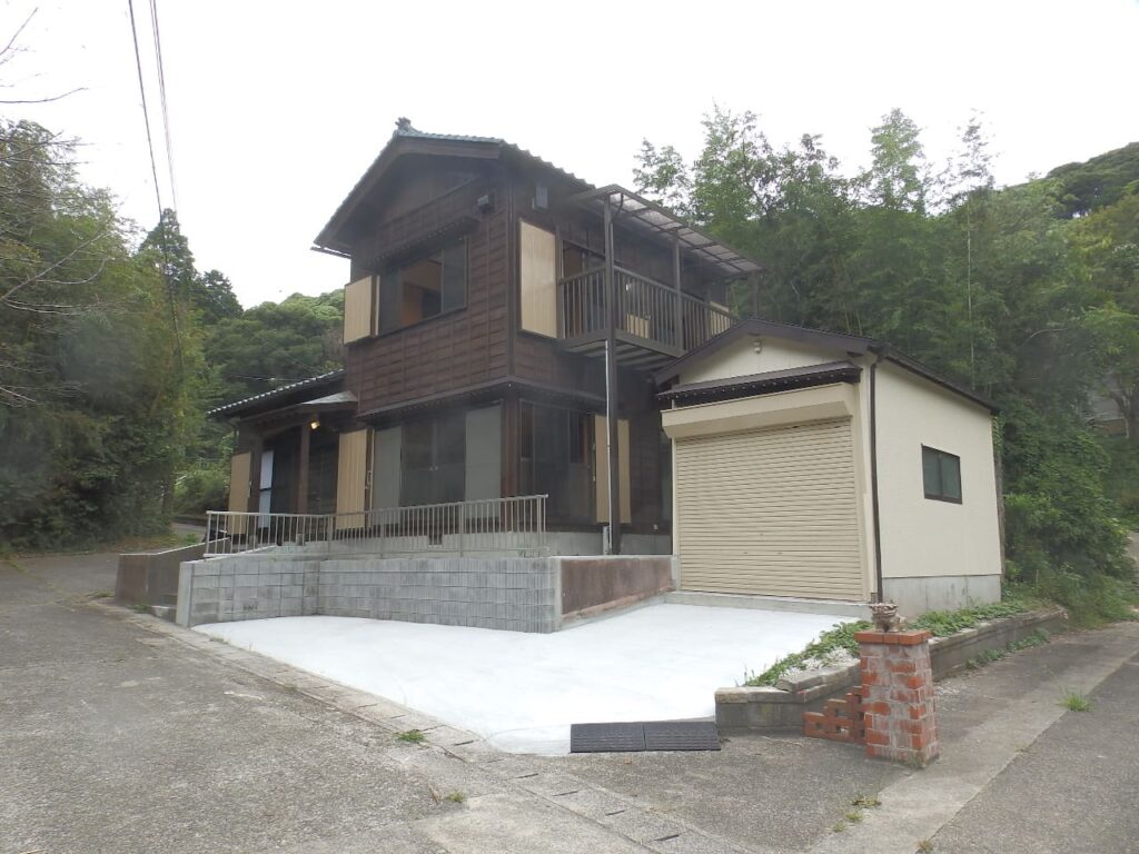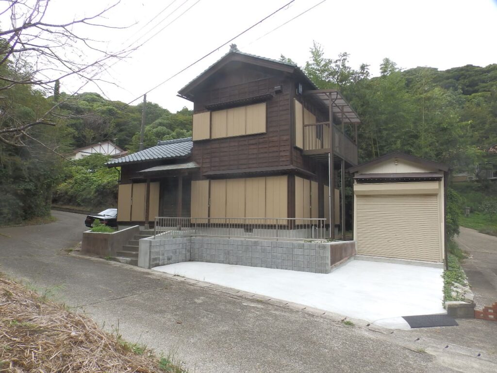 海近・里山の中の住宅地。景勝地「雀島・夫婦岩」徒歩5分。和風の風情ある2階建。内外リフォーム済。別棟の倉庫も有り。サーフィンや釣り等マリンレジャーの拠点にも良し。