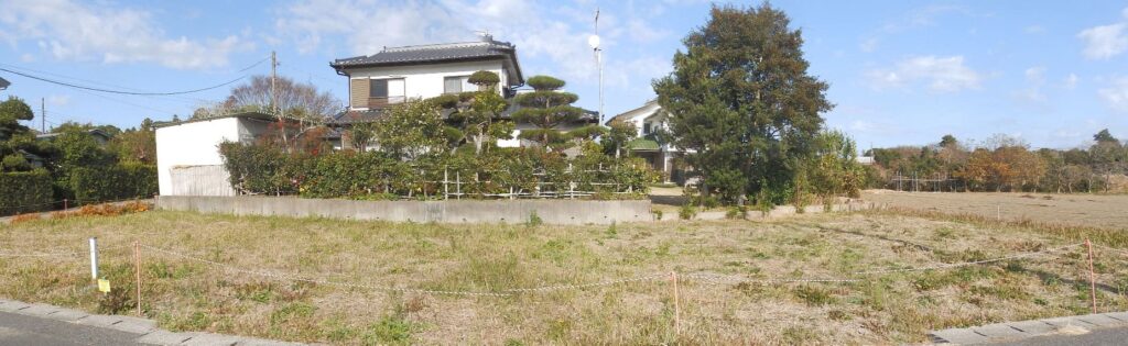 周囲に耕地が広がり、明るく開放的。南西角地!広めの平坦地。菜園等楽しみながらのマイホーム用地に良し。大型スーパー徒歩7分。一宮海岸車約7分。