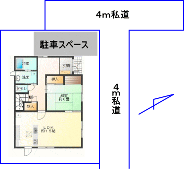 | 接道状況 | 北東側幅員4m私道、北西側幅員4m私道に面す |