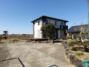 海近の閑静な住宅地、別荘地。角地で日当たり、通風良好。敷地広々473.7坪!築浅で建物キレイにお使いです。各部屋ひろびろ。ランドリースペースも有り家事動線を考えた間取り。収納豊富。敷地内にはテニスコート、別棟平屋、ガレージ有り。駐車は複数台可。コンビニ徒歩圏。海まで徒歩11分!
