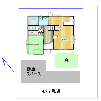 | 接道状況 | 南西側幅員4.7m私道、南東側幅員4.7m私道に面す |