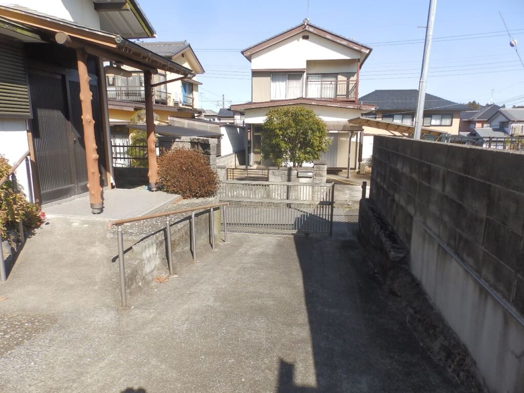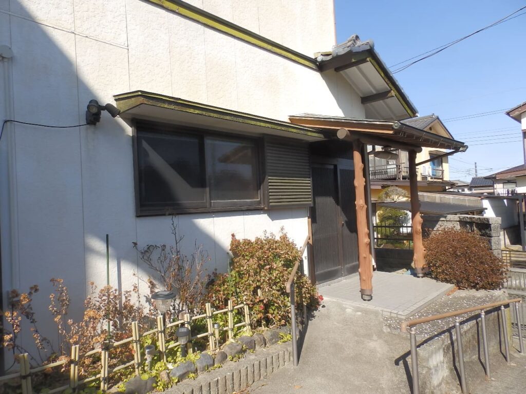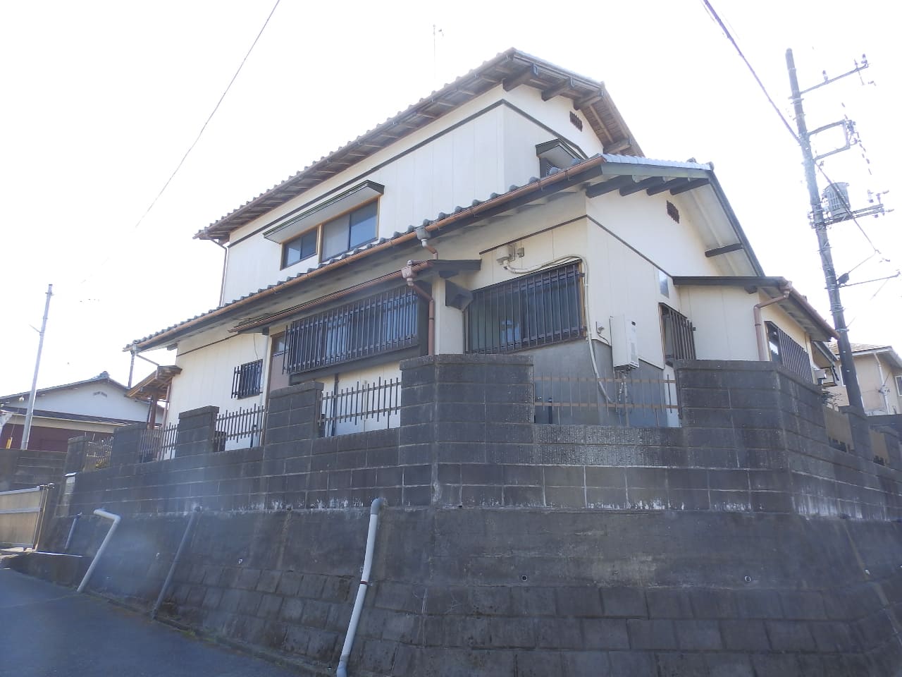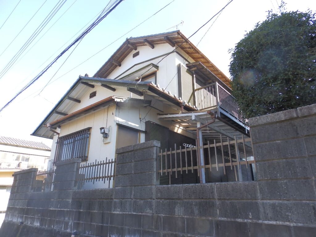 市街近郊の高台「六田台」。区画整理された閑静な街並。角地。切妻屋根の和風住宅。昭和45年築。昭和60年に平屋から2階建に増築。つくばいの有る風情感じる庭。のある