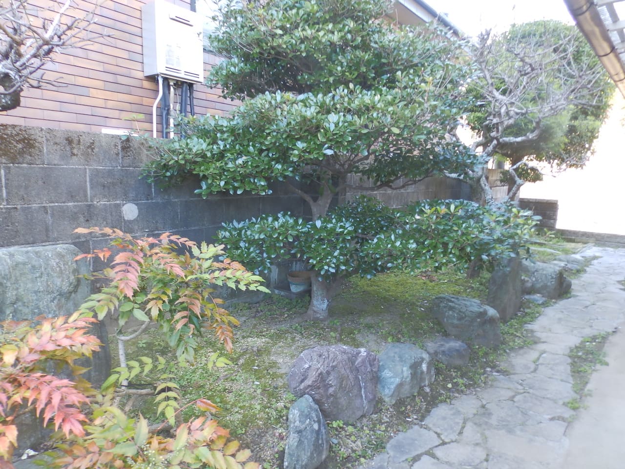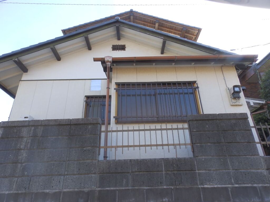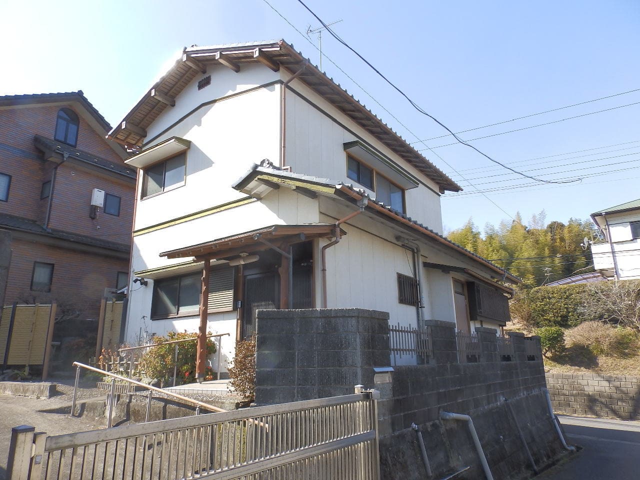 市街近郊の高台「六田台」。区画整理された閑静な街並。角地。切妻屋根の和風住宅。昭和45年築。昭和60年に平屋から2階建に増築。つくばいの有る風情感じる庭。のある