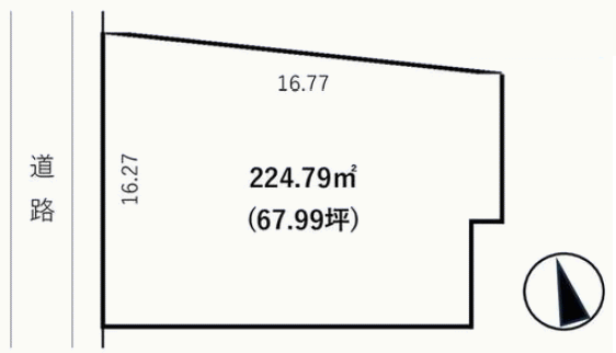 | 接道状況 | 西側幅員約3.9mの公道に16.2m面す ※一方通行道路 |