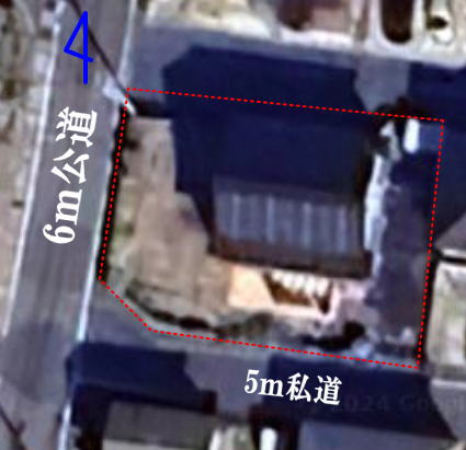 | 接道状況 | 南側幅員5mの私道、西側幅員6mの公道に面す/角地 |