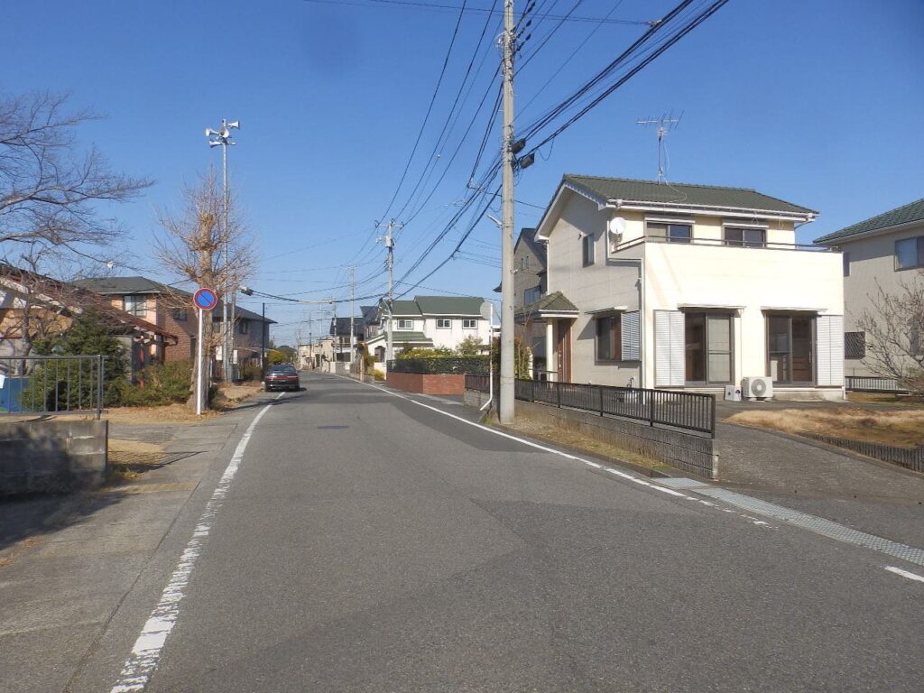 | 備考 | ・南側接面道路は、分譲地完成時に分譲会社から茂原市に寄付。現在所有者は茂原市。(建築基準法第42条1項5号道路) ・西側接面道路は、茂原市道。(建築基準法第42条1項1号道路) ・北側接面道路は隣接分譲地の私道。 |