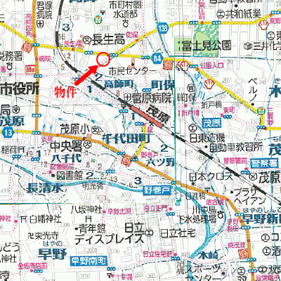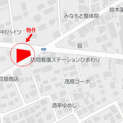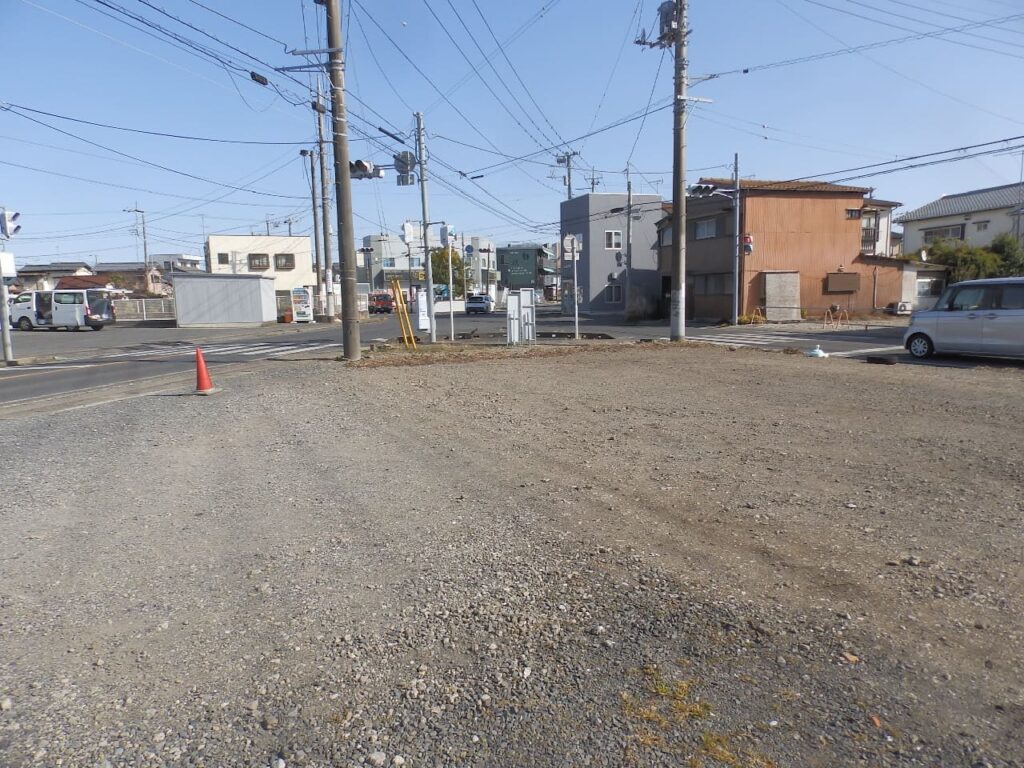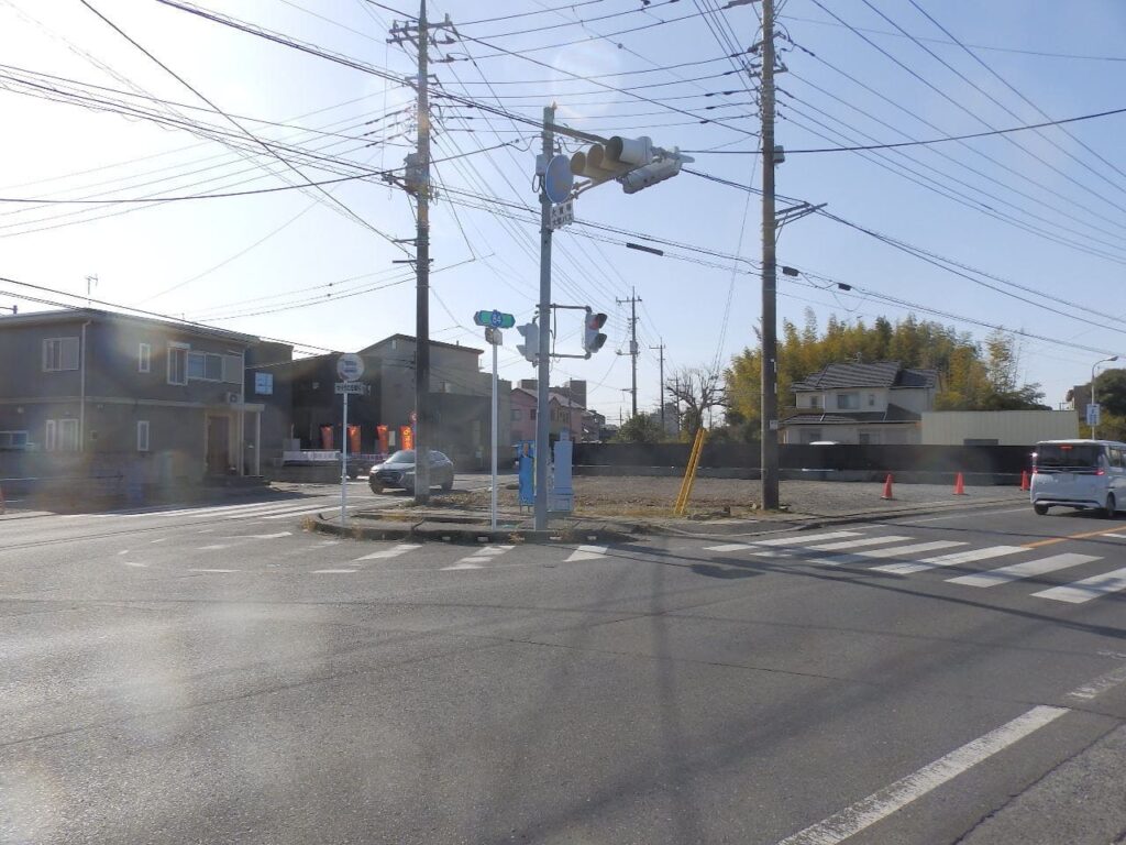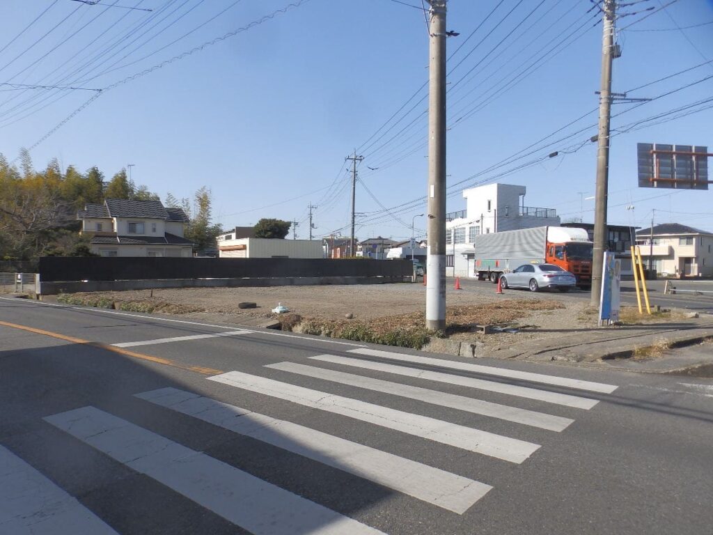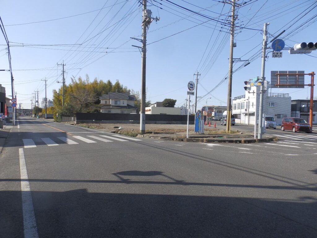 茂原市街と千葉方面、海岸や一宮方面を結ぶ主要道が分岐する交差点に面した土地。茂原駅からも徒歩12分なので、事務所用地にも良し。もちろん店舗、配送センター用地などにも良し。