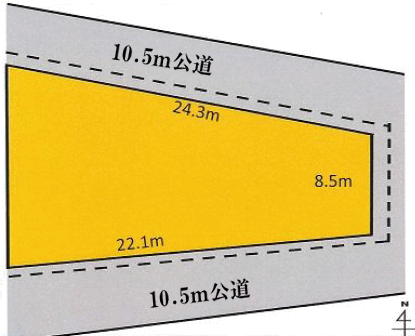| 接道状況 | 北側幅員10.5m、南側幅員10.5mの各公道に面す |